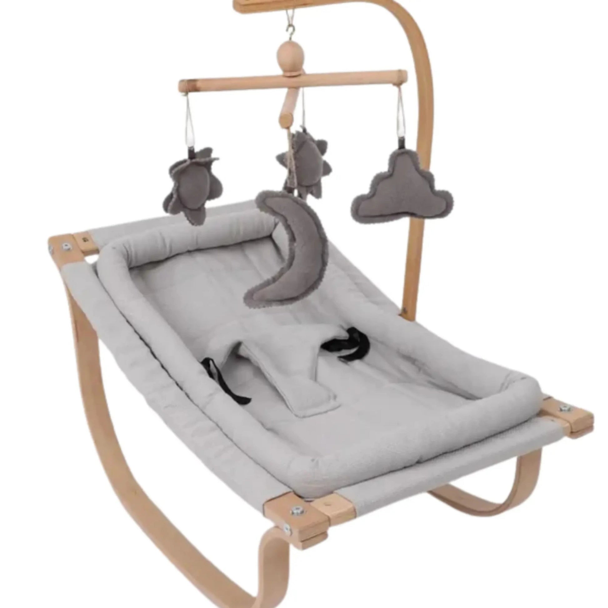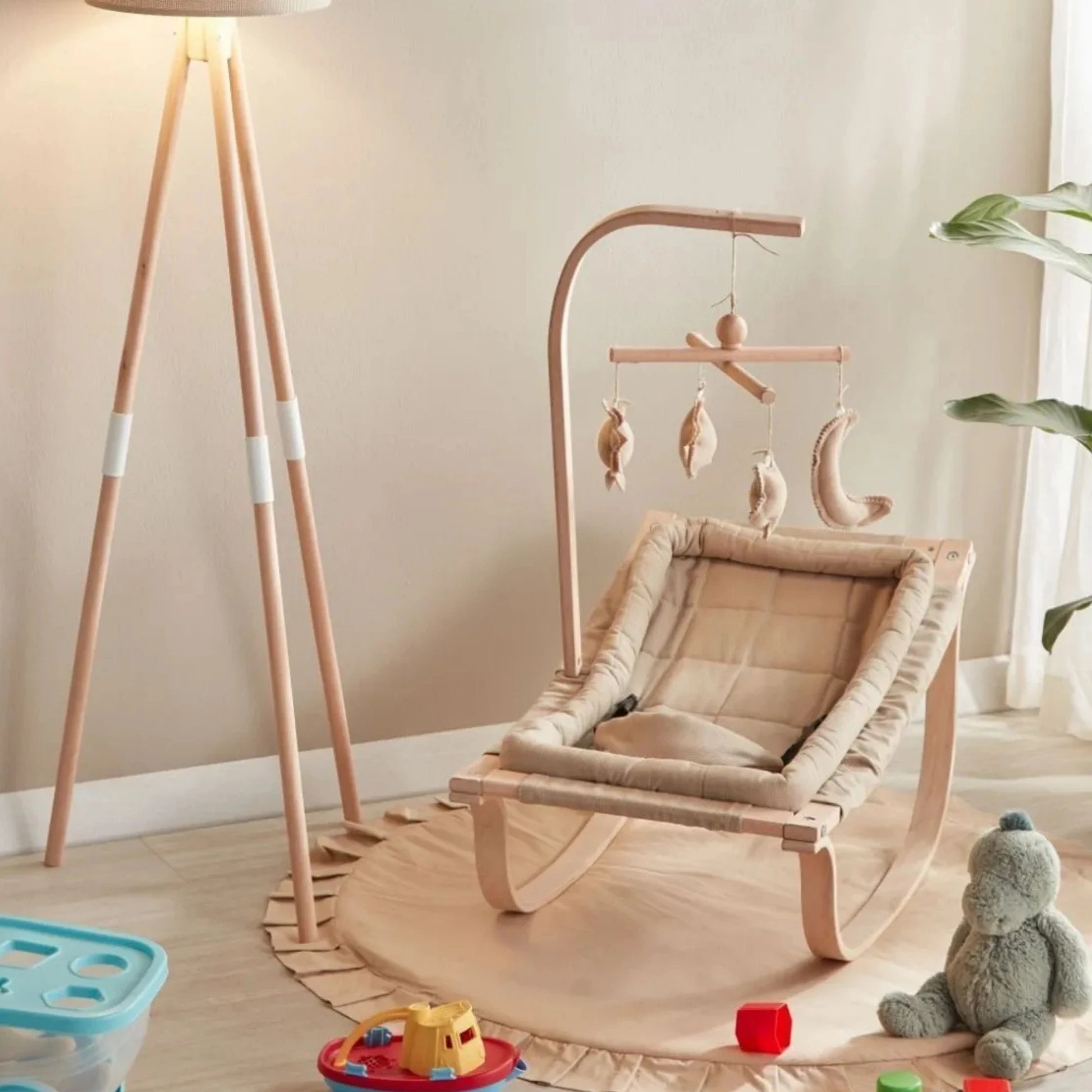 The Wooden Newborn Rocker Baby Lounger offers a comfortable, safe, and natural sleeping space for your baby in the early months. It is an ideal companion for both mother and baby during the newborn stage. With its aesthetic design, use of natural materials, and a delightful mobile gift, it is both a functional and stylish choice.