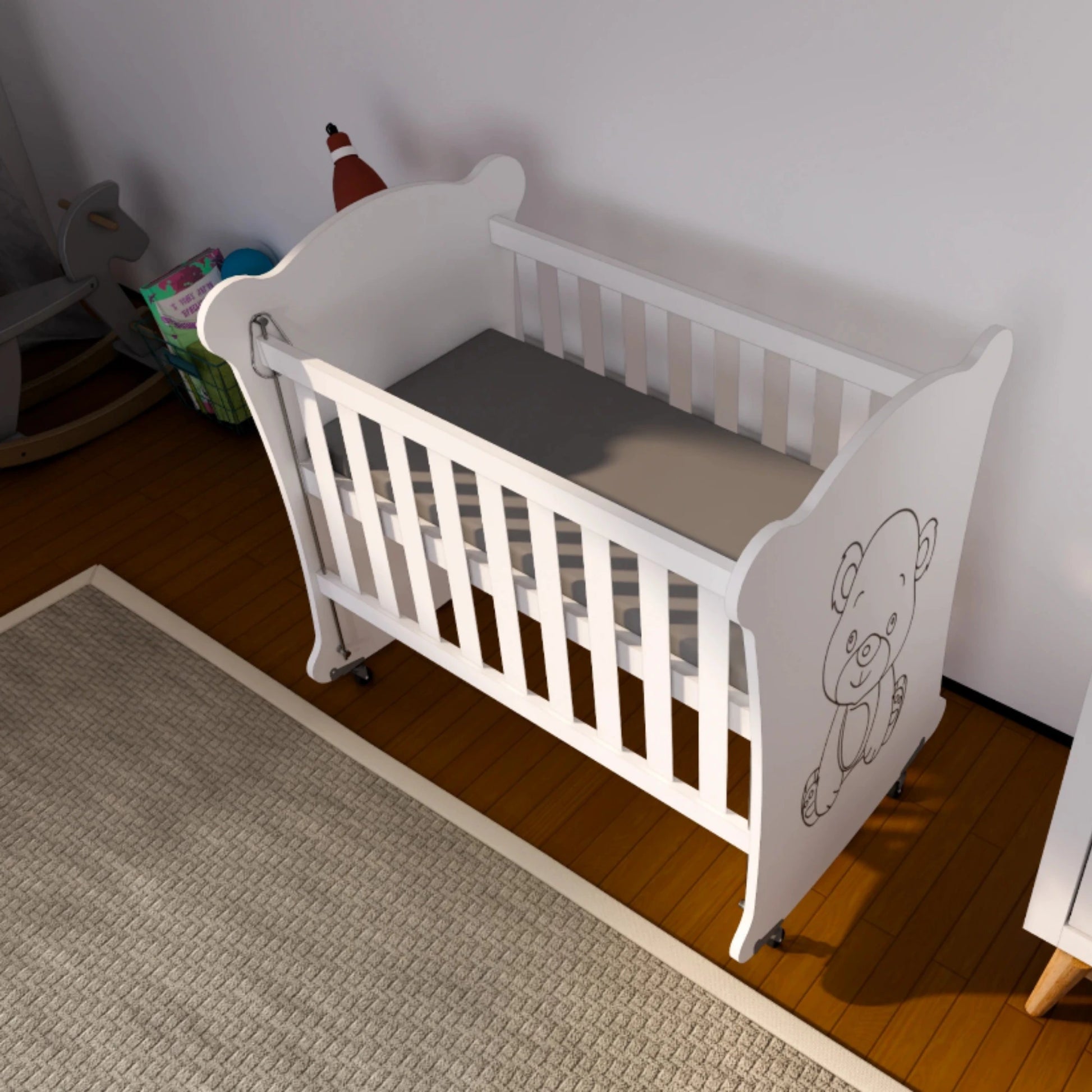 Featuring a charming bear motif, this crib is not only functional but also decorative. It offers practical use for parents and creates a peaceful, protected environment for the baby.